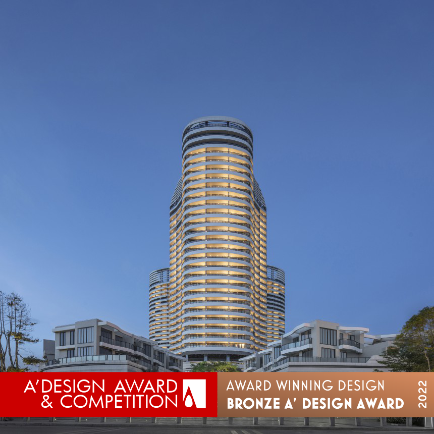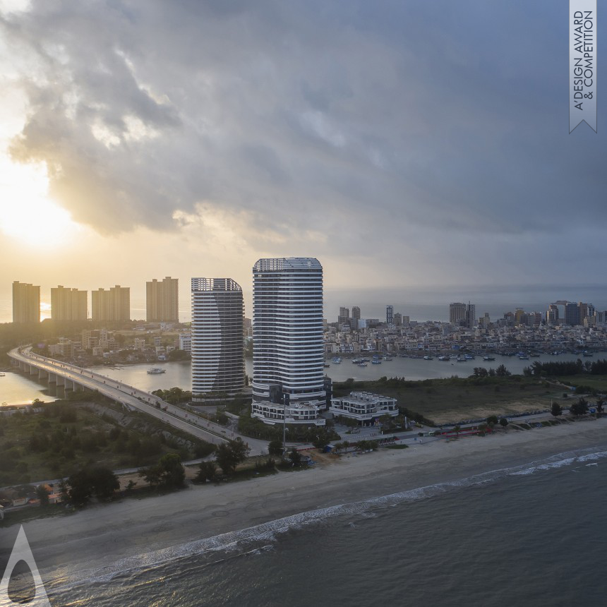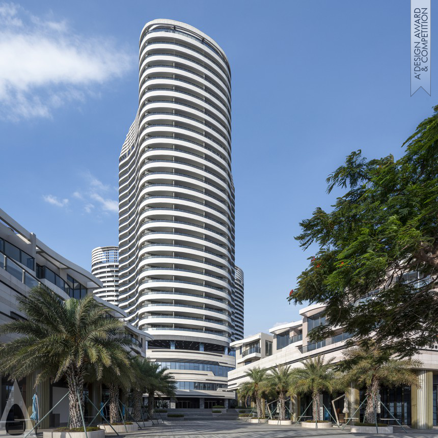 The high-rise building volumes are smooth curved shapes, using white colored and glass balconies to create a lightweight beachfront atmosphere. Changing the shape of white colored balcony create the crescent pattern on the façades, which metaphor the ocean waves and the double moons. The podium façade concept comes from rocks deposition texture and cracks erosion by seawater. Different width of stones with various texture and colors create layers of rock-like façade and rich volumes of shapes.